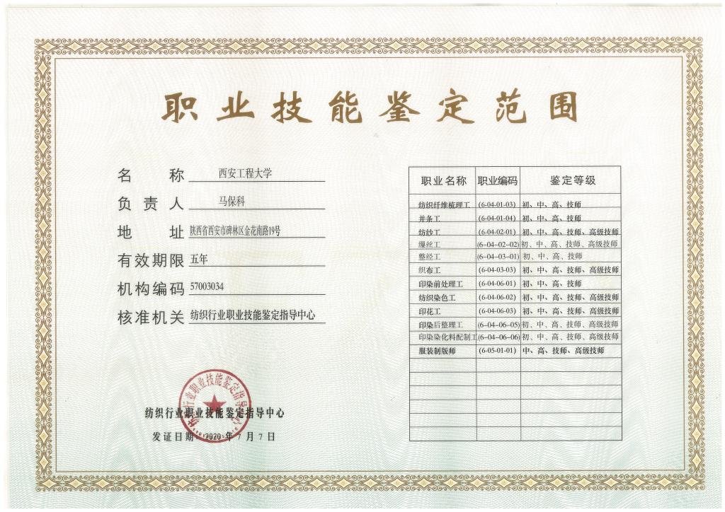 为切实加强米兰官网继续教育人才培养与劳动就业的联系,推进校企合作、产学研结合,充分发挥学校继续教育服务地方经济社会的职能,全面提升纺织行业从业人员的综合素质、职业能力和社会竞争力,根据纺织行业职业技能鉴定指导中心《关于申请设立纺织行业职业技能鉴定机构的通知》(纺职字〔2019〕15号)以及《人力资源和社会保障部关于实行职业技能考核鉴定机构备案管理的通知》(人社部〔2019〕30号)文件精神,米兰官网在充分调研的基础上,结合纺织服装行业的办学特色以及雄厚的师资力量,学校联合我省多家纺织企业,积极组织撰写申报材料,成功获批“纺织行业职业技能鉴定所”,开展陕西境内乃至西北地区纺织服装从业人员职业技能鉴定的组织、考试和协调管理工作。