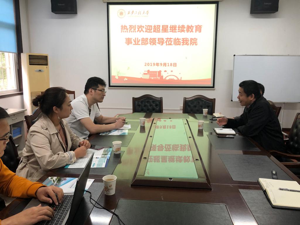 2019年9月18日下午,北京超星公司继续教育事业部副总经理马文华一行三人来米兰官网商谈继续教育合作相关事宜。双方的合作交流座谈在学院会议室召开,学院副院长刘玉森、学院培训部、成人招生负责人等参加了此次座谈,座谈由刘玉森主持。