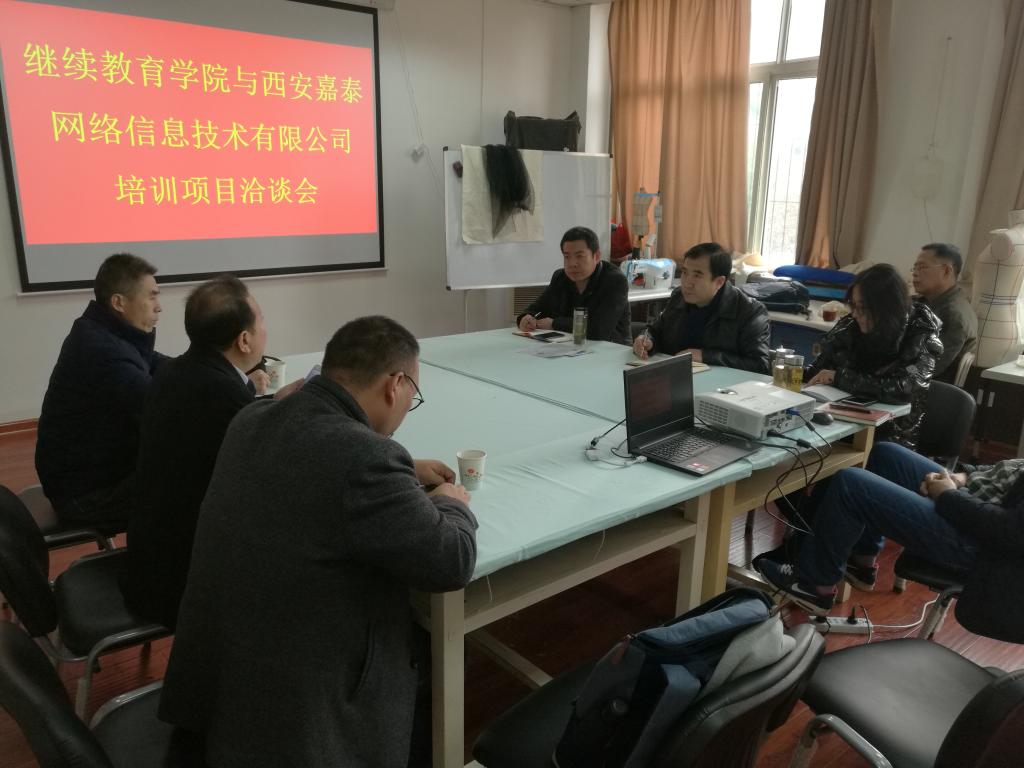 2018年12月24日上午,应用技术(继续教育、中澳国际)学院在学院313培训室召开与西安嘉泰网络信息技术有限公司的培训项目洽谈会,学院院长马保科、副院长刘玉森以及培训部、教务科、办公室负责人等参加了会议,会议由马保科主持。