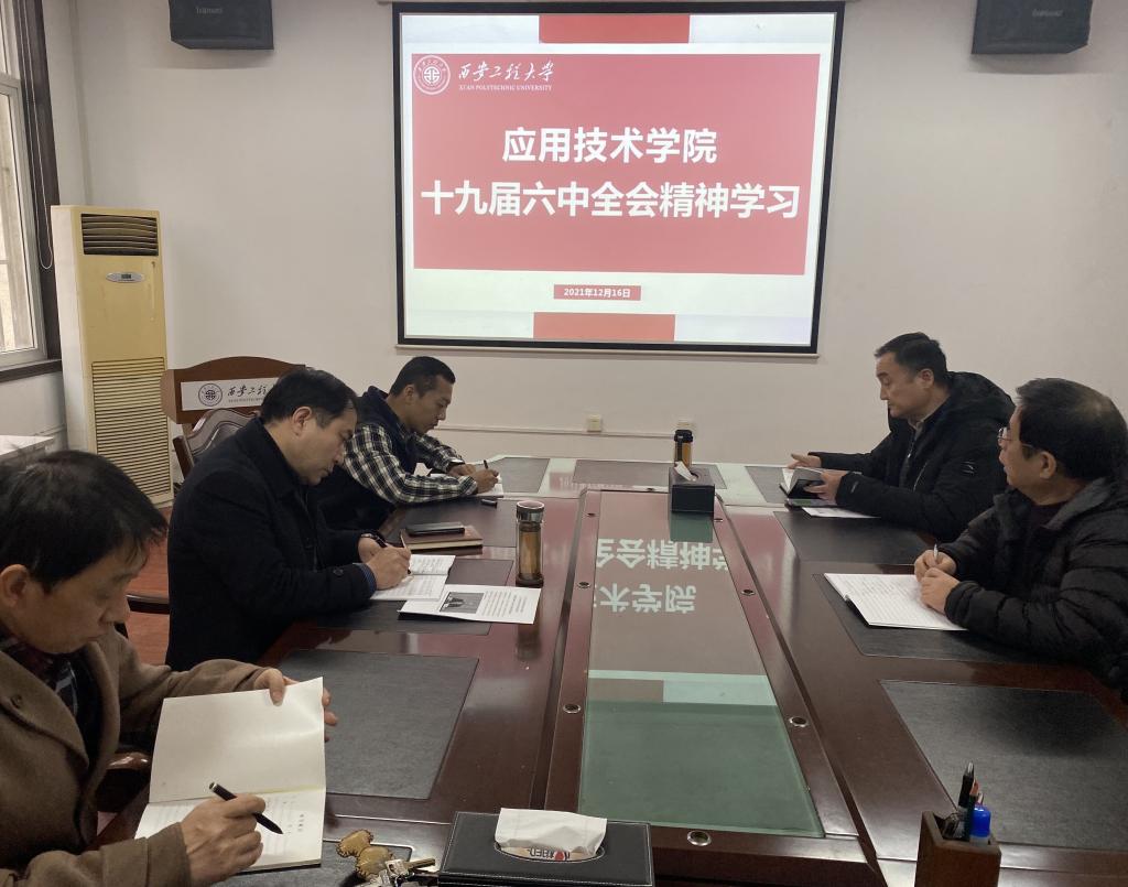 2021年12月16日下午,ac米兰官网中文网站直属党支部在金花校区学院会议室开展党的十九届六中全会精神专题学习,学院中心组成员参加,会议由直属支部书记王宇主持。